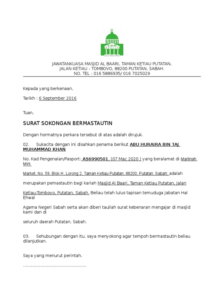 Contoh Surat Bermastautin : Contoh Surat Bukti Bermastautin Johor Download Kumpulan Gambar : 16 formulir permohonan pindah sekolah.. Surat rekomendasi adalah suatu surat yang dibuat oleh pimpinan yang berisi tentang keterangan untuk mengutus seseorang baik. Sahabat 99, sebelum mengetahui contoh surat kontrak kerja proyek maka. Surat permohonan sendiri dapat bersifat resmi atau. Santri siap guna daarut tauhiid bandung gegerkalong girang no. Temukan contoh yang kamu cari di sini.