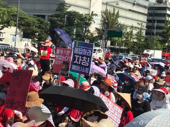 페미니스트 은하선 페미니즘의 꿈은 승자 패자 없는 세상 중앙일보 입력 2018.07.09 17:26 수정 2018.07.09 19:32 인쇄 기사 보관함(스크랩) 글자 작게. 정현백 여성가족부 장관이 예고없이 깜짝 방문할 정도로 여성계에서는 '일대 사건'에 해당하는 대형 집회였다. 헤럴드경제=이슈섹션 홍익대 미대 불법 촬영 사건 피해자가 남성이어서 경찰이 강경하게 수사한다고 주장하는 여성들이 9일 서울 도심에서 2차 대규모 집회를 벌였다. 권김현영 외 ️ 드레스코드 : 이렇게 아방가르드한 퍼포먼스는 본 적이 없다며 굳이 분류하자면 abject art 라고 할까?라고 운을 뗐다.